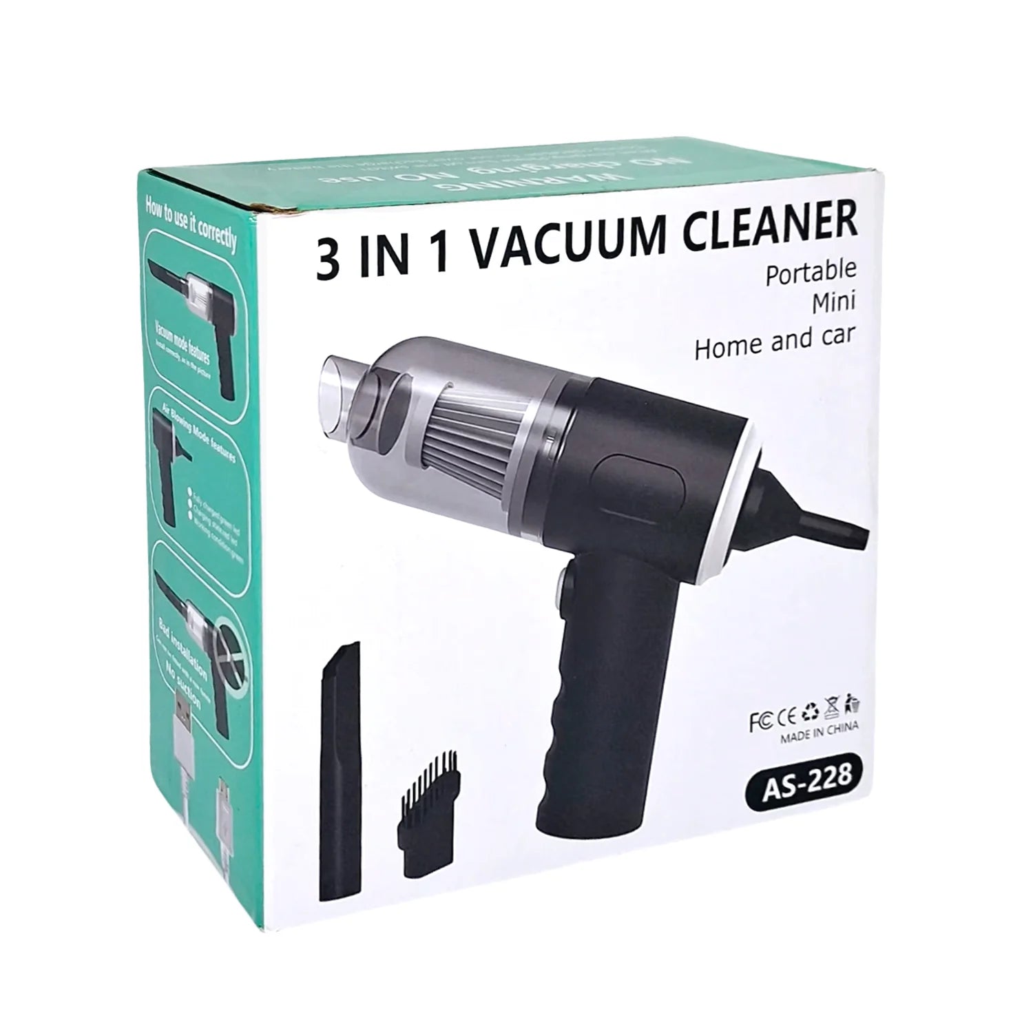 ✨El aspirador 3 en 1 AS-228 es un dispositivo portátil diseñado para la limpieza en el hogar y el coche, que combina funciones de aspiración, soplado y posiblemente inflado.✨