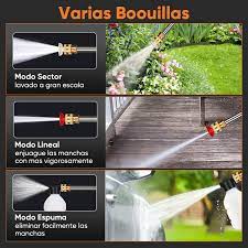 Boquillas intercambiables: Incluyen boquillas para diferentes patrones de pulverización (alta presión, abanico).